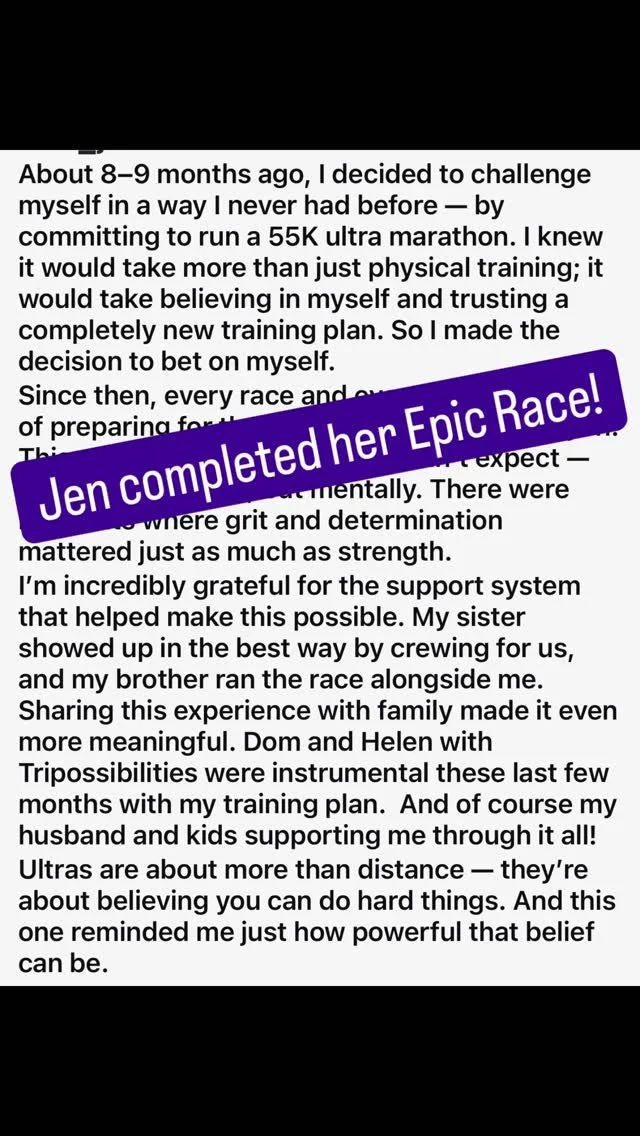For more information on coaching, camps, clinics, and events, email us at TriPossibilities@gmail.com